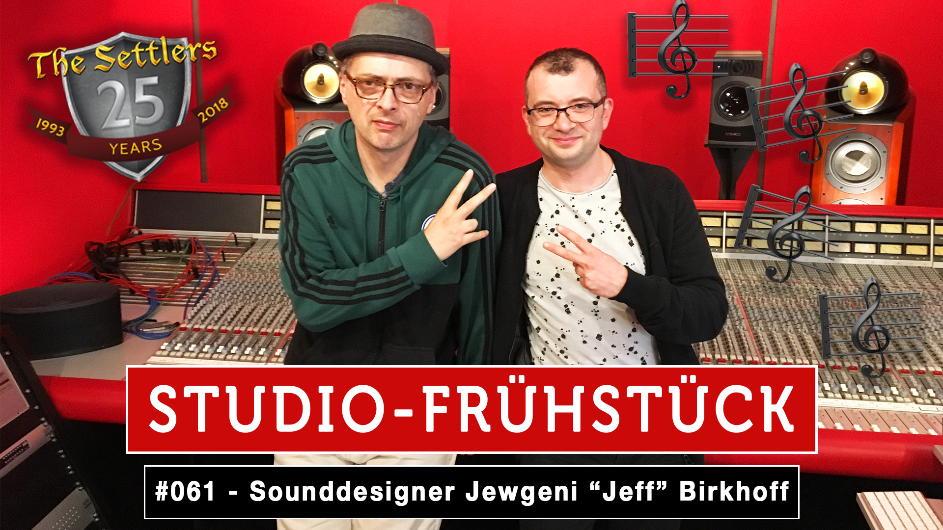 Komponist Jeff Birkhoff Komponist und Sounddesigner Jewgeni “Jeff” Birkhoff ist mein Gast im Studio-Frühstück #061 – wir sprechen über seine Arbeit für das Videospiel Siedler, Vermarktung von Komponisten und Produzenten, Vocalediting und vieles mehr.
